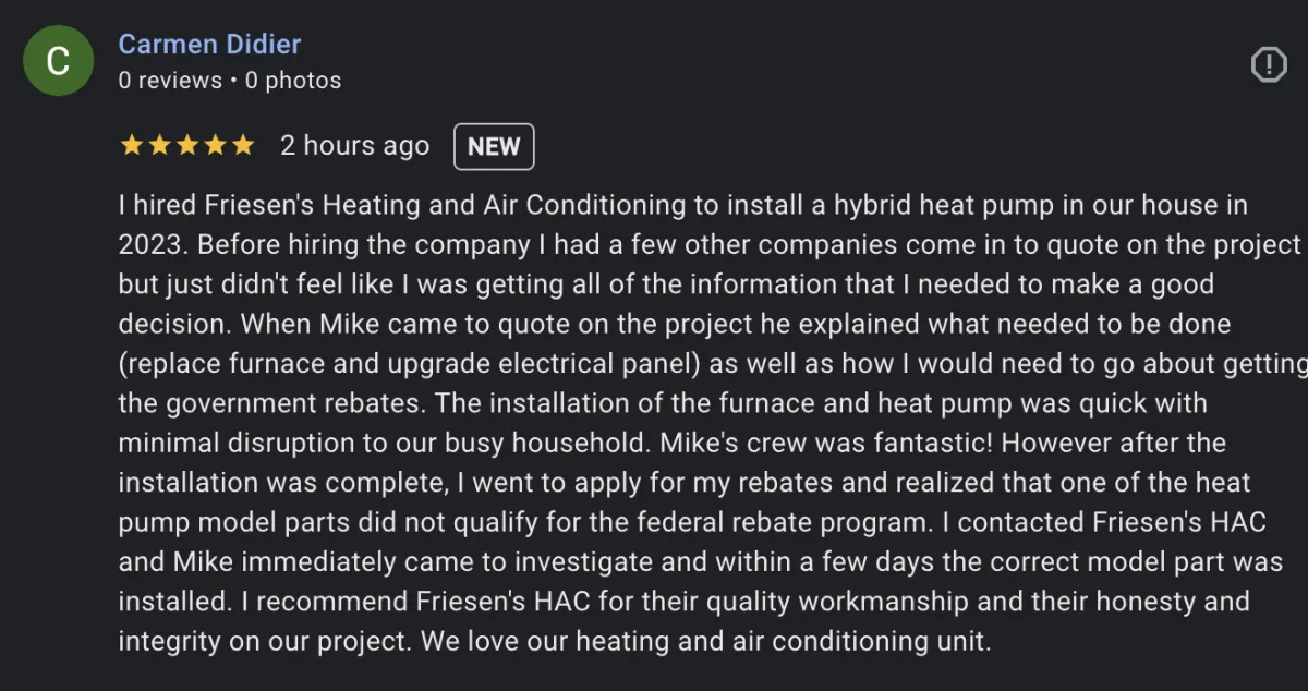 We built Friesen’s on the belief that quality should be the standard in every home. Your comfort matters to us because this is our community too. Every system is installed with precision, care and pride, reflecting the level of work we want for our own family and neighbours.